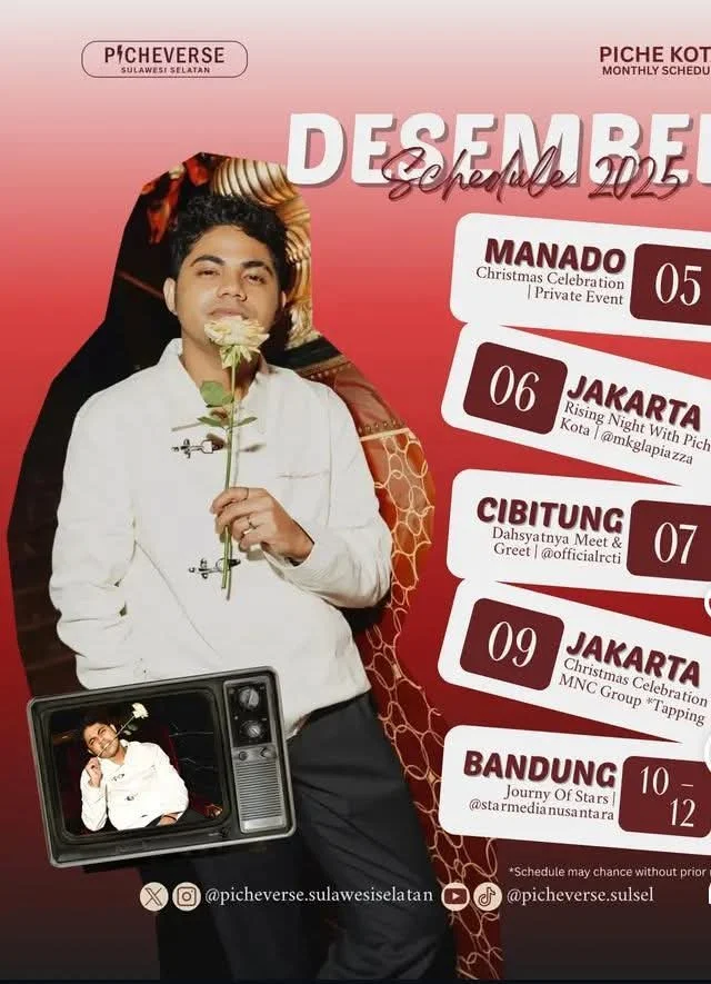 Di setiap panggung yang ia datangi, Piche Kota selalu tampak seperti lelaki yang sedang pulang ke dirinya sendiri—tenang, hangat, dan membawa sepotong bunga yang belum sempat layu. Desember 2025 menjadi bulan ketika langkahnya kembali menoreh jejak, bukan hanya pada panggung-panggung besar, tetapi juga pada hati para penggemarnya yang terus menua bersama lagu-lagunya.