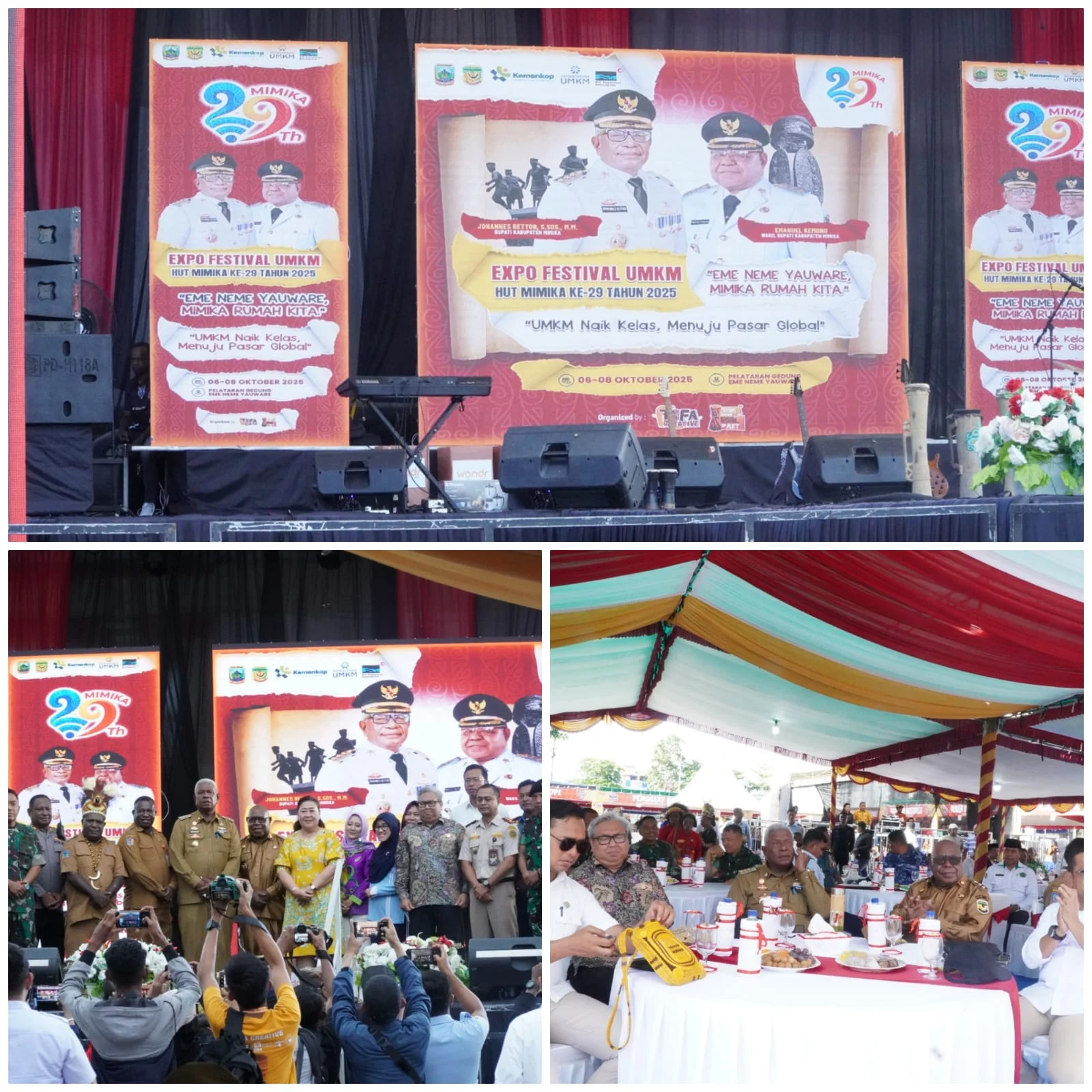 Expo Festival UMKM Mimika 2025 resmi dibuka pada Senin (6/10/2025) oleh Deputi Bidang Usaha Kecil Kementerian Koperasi dan UMKM RI, Temmy Satya Permana. Acara bergengsi ini digelar di pelataran Gedung Eme Neme Yauware, sebagai bagian dari rangkaian peringatan HUT ke-29 Kabupaten Mimika.