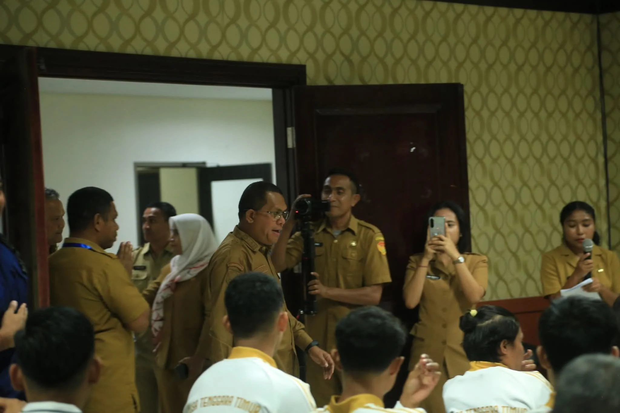 KUPANG |LINTASTIMOR.ID)  – Suasana khidmat menyelimuti ruang rapat Asisten Sekda, Kantor Gubernur Nusa Tenggara Timur (NTT), saat Gubernur Emanuel Melkiades Laka Lena secara resmi melepas Kontingen PON Bela Diri NTT Tahun 2025 yang akan berlaga di Kabupaten Kudus, Jawa Tengah, Senin (13/10/2025)