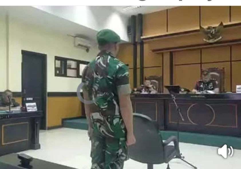 Sidang tersebut menghadirkan tersangka pertama, seorang perwira berpangkat Letnan Dua (Lettu), yang dikawal ketat oleh Polisi Militer (PM) saat memasuki ruang sidang. Suasana ruang sidang tampak tegang namun tertib, dengan kehadiran aparat hukum militer, penasihat hukum, serta keluarga korban yang turut memantau jalannya persidangan.