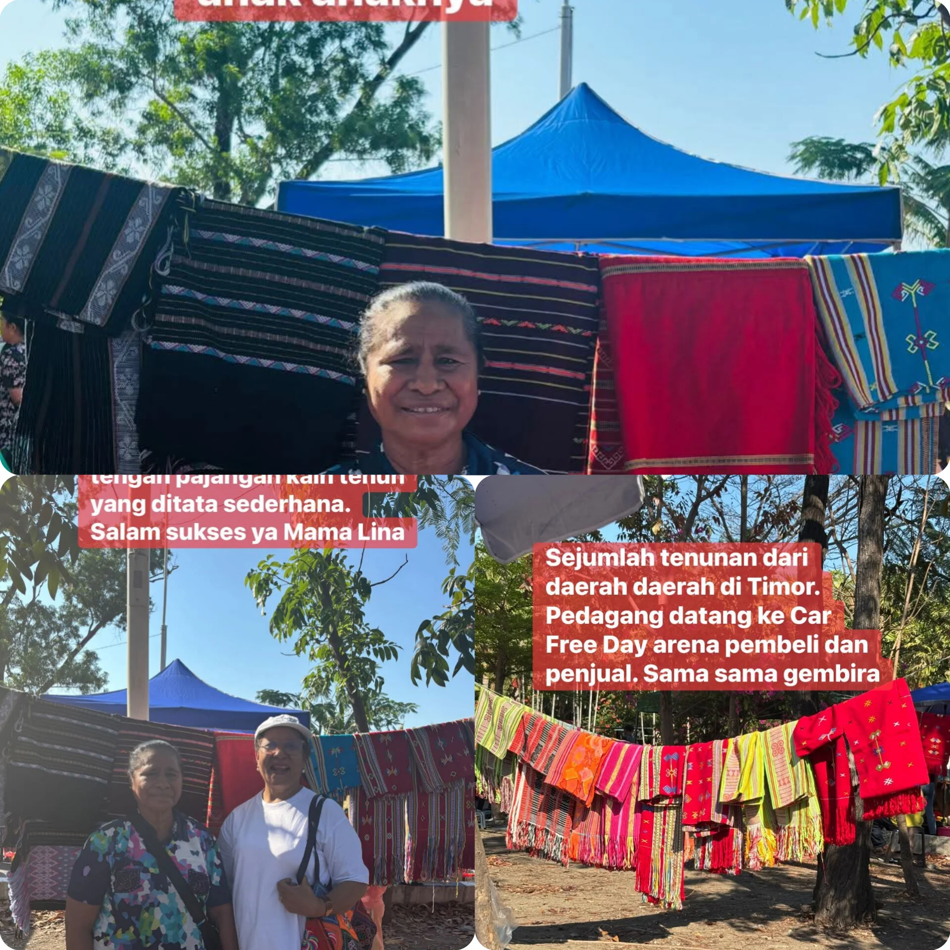 Sudah bertahun-tahun Mama Lina mencari nafkah dari hasil tenunannya. Sejak anak-anaknya masih kecil, ia berdiri di bawah terik matahari, menenteng hasil karya, berpindah dari satu acara ke acara lain. Kadang di pasar, kadang di pameran, kadang di tepi jalan—asal ada harapan untuk menambah uang sekolah anak-anaknya.